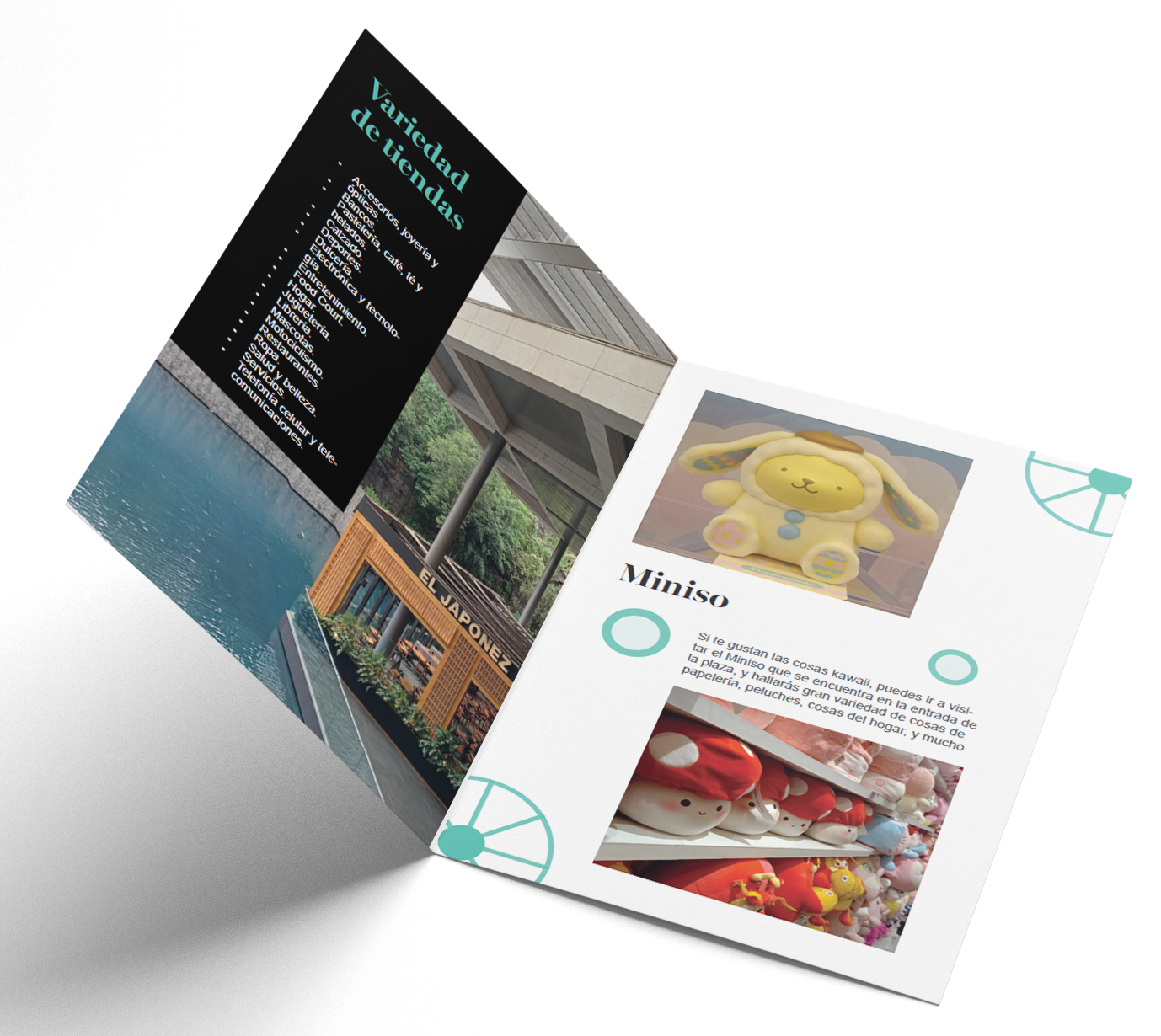 El objetivo de este díptico fue poder resaltar que Oasis es una plaza que se debe visitarm ya que tiene una gran variedad de tiendas y es una plaza abierta, es decir, tiene espacios al aire libre. Es un lugar que puedes disfrutar.